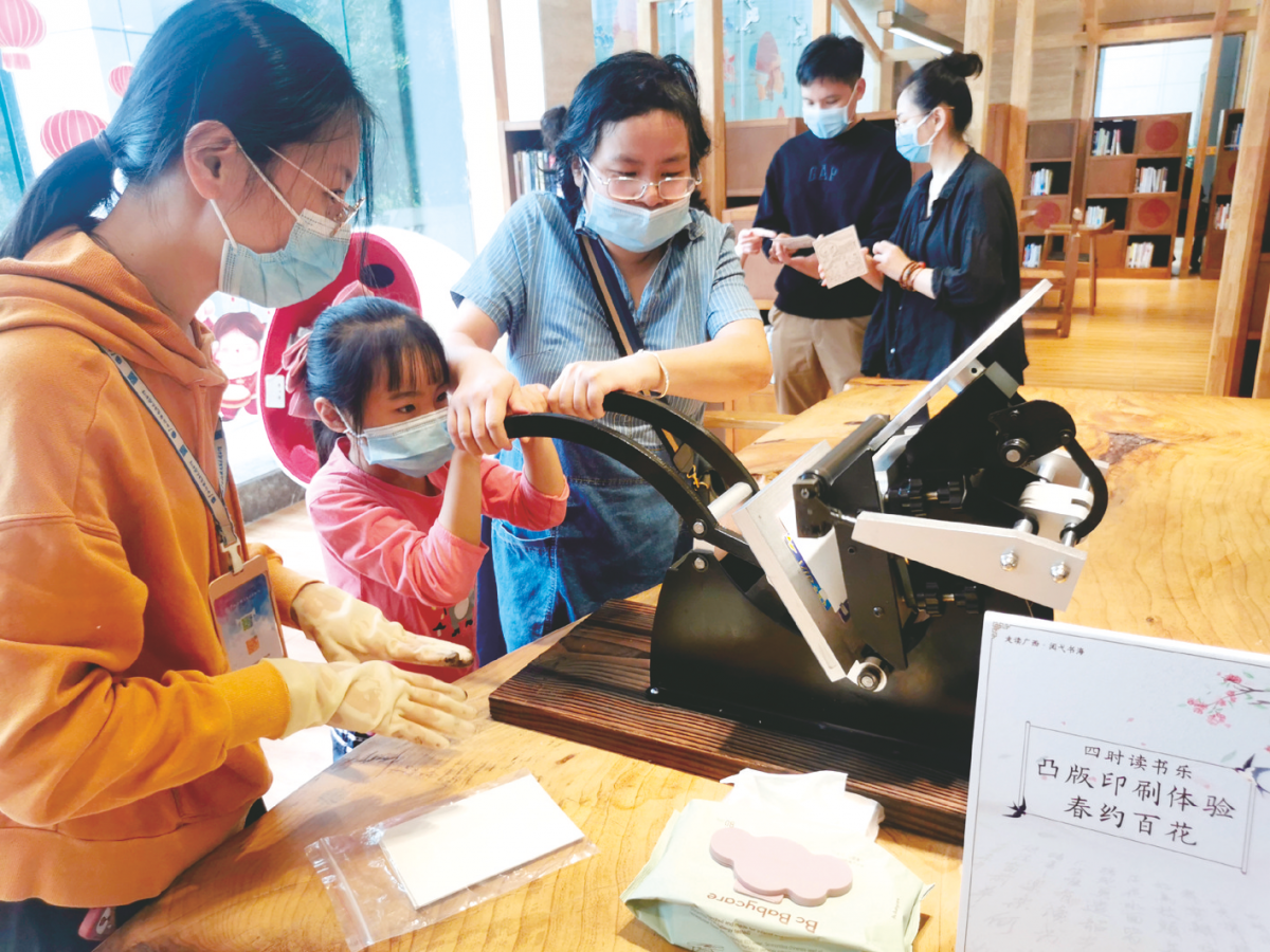 读者在广西图书馆体验凸版印刷技艺。记者 赖有光 摄