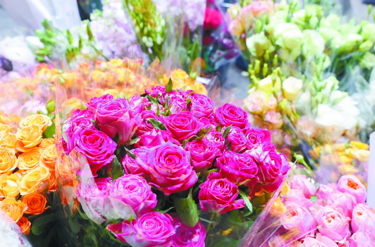 作为花艺师常用的鲜切花,玫瑰深受市民喜爱。许多花店的玫瑰品种都在10种以上,最热门的是红色玫瑰,如传奇和卡罗拉。两者的区别是传奇更大、花瓣带点卷度,而卡罗拉是杯状的。