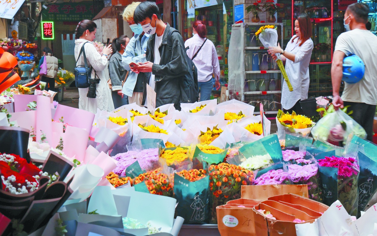 市民在花市选购鲜花。本文图片均为南国早报记者 何定坚 摄