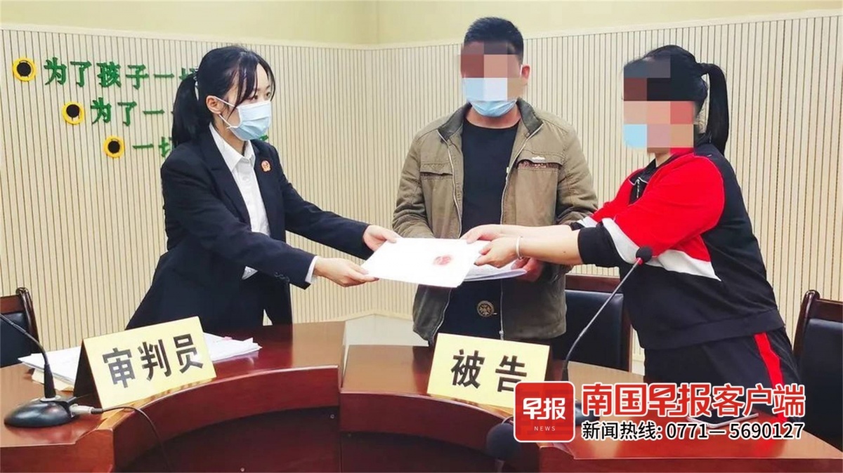 ▲法官向小明的父母发出《家庭教育令》。法院供图