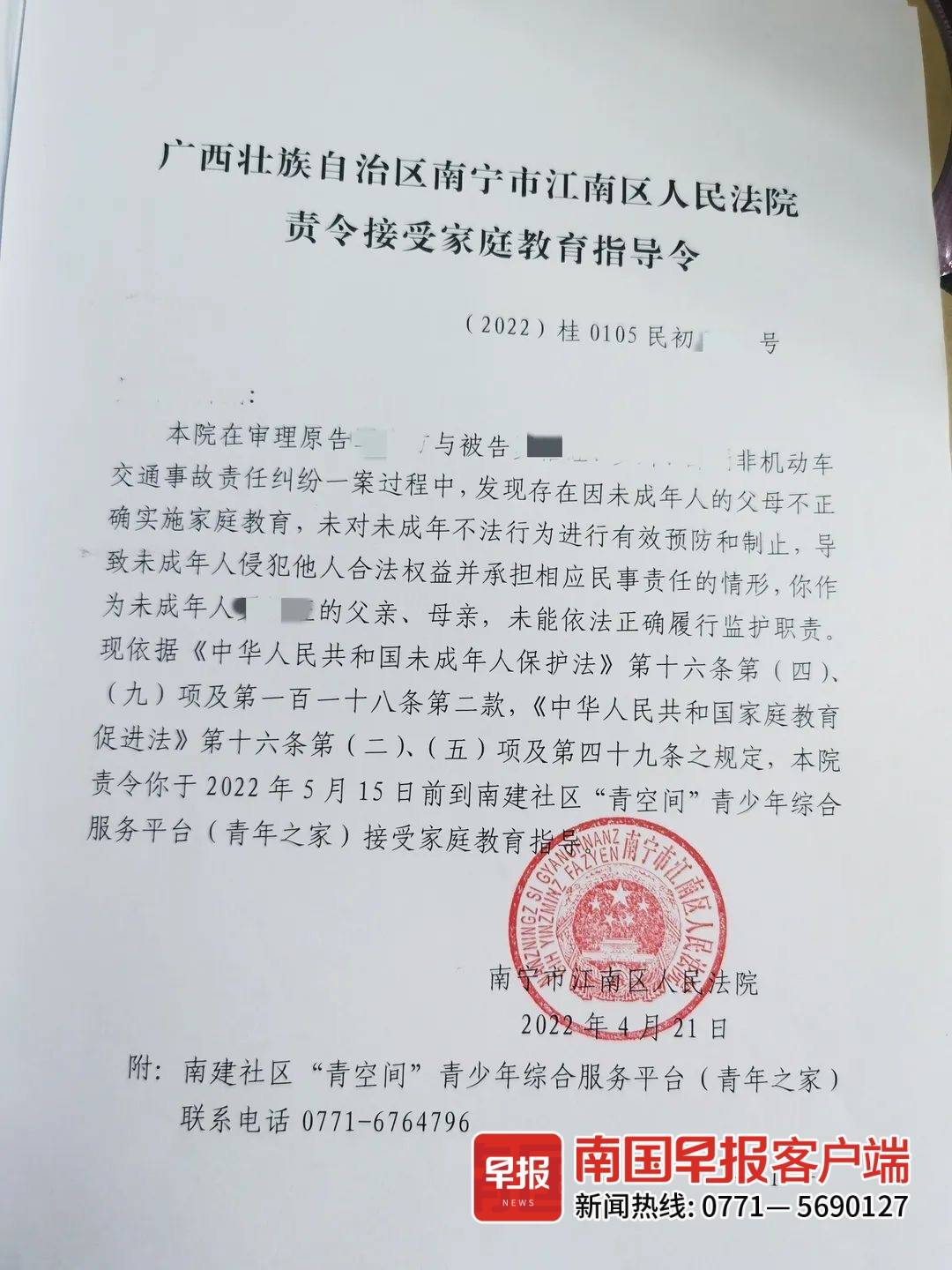 南宁一少年骑车撞了人 父母收到《家庭教育令》