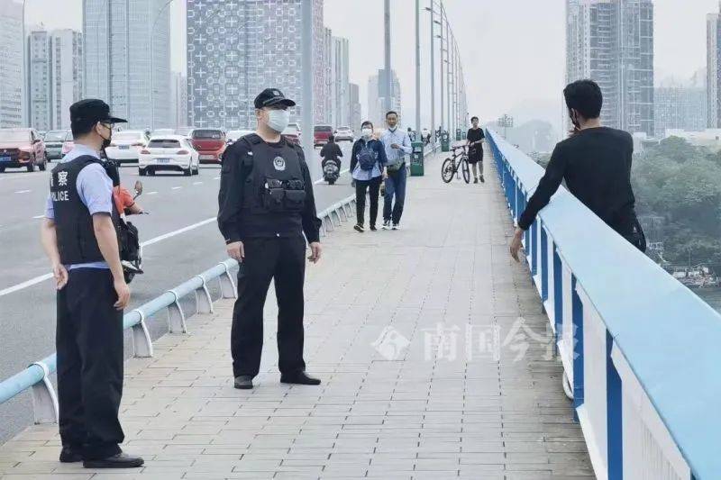 4月23日10时23分,接110指挥中心指令,柳州市文昌大桥上有一名黑衣男子站在桥面栏杆外,公园派出所立即出警。到达现场后,警发现该男子情绪较激动,身上带有酒味,民警闭健威决定与他聊天缓解他的情绪。