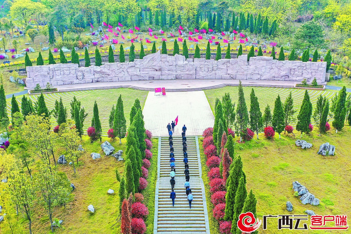 近日,在红军长征湘江战役纪念园,党员干部在凭吊广场缅怀革命先烈,传承红色基因。广西日报-广西云客户端记者 李 耿 通讯员 唐广东 摄