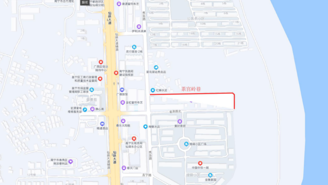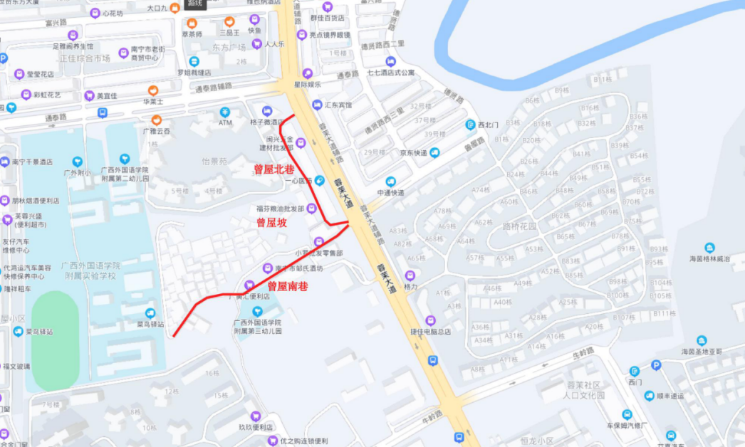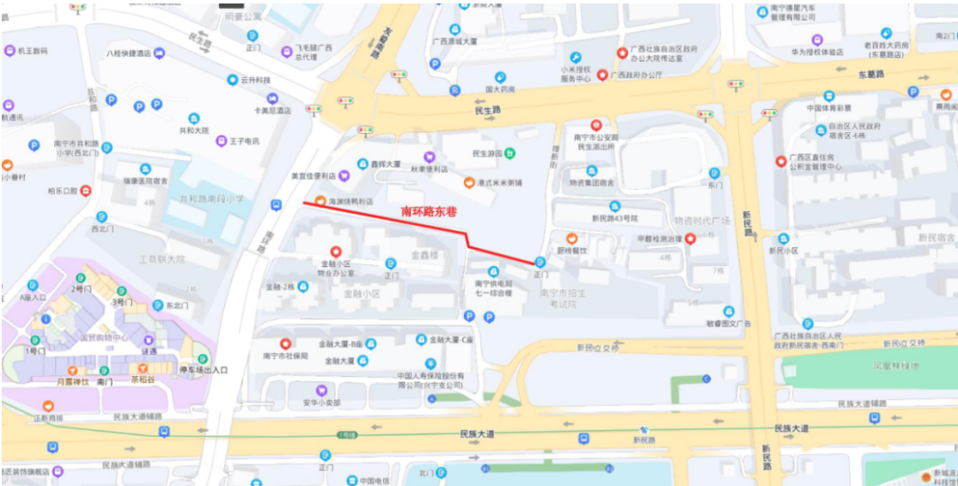 南环路东巷:东起南宁市招生考试院,西至南环路。