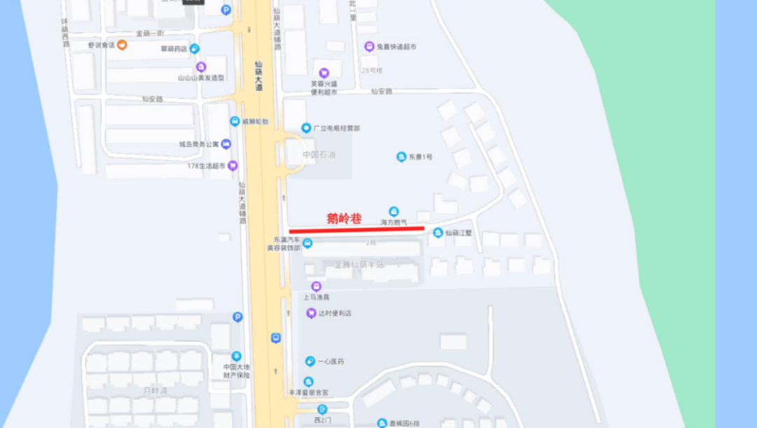 鹅岭巷:西起仙葫大道,东止仙安路。