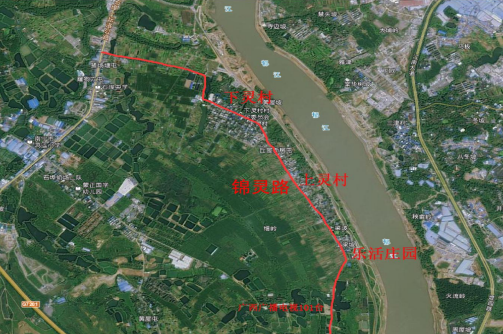 锦灵路:北起石埠路,向南延伸途经下灵村村委会、上灵村村委会,至美丽南方·乐活庄园南面900米处三岔路口止。