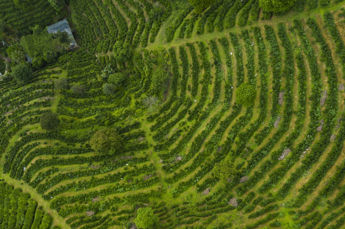 4月24日,广西梧州市苍梧县六堡镇拉板村八集古茶园绿意盎然,春色怡人,纵横交错的茶垄风光旖旎,美如画卷。通讯员 何华文 摄