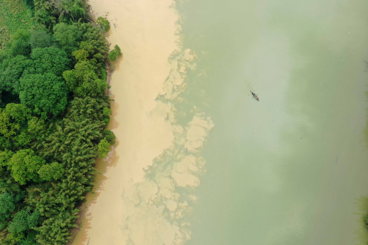 受短波槽、低涡切变线和地面弱冷空气共同影响,广西柳州市融安县出现强降雨过程,降雨过后,地处珠江上游的融江广西柳州市融安县城段江水浑浊,融江支流浪溪江水流清澈,在两江交汇处出现一清一浊的现象。通讯员 谭凯兴 摄