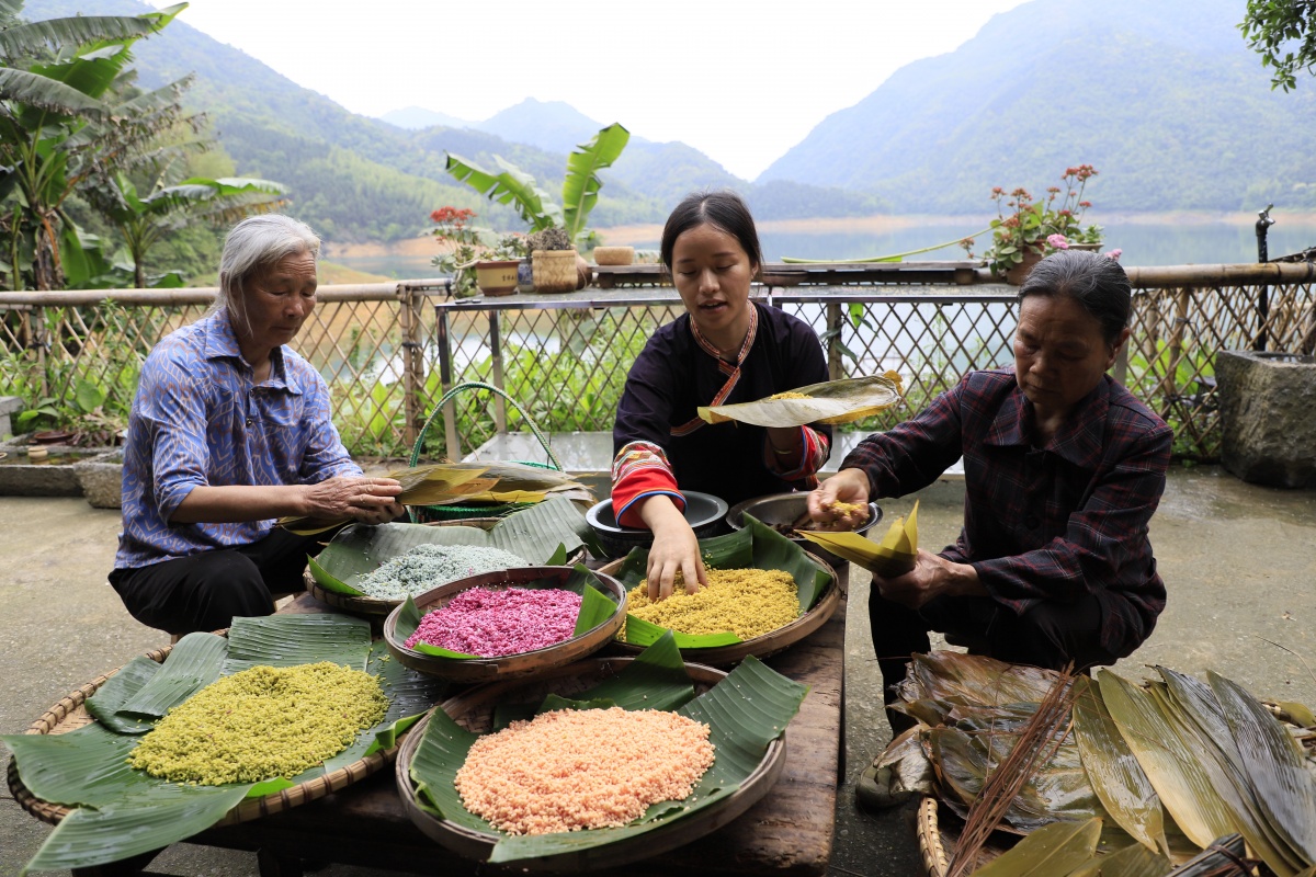 4月29日,桂林市灵川县公平乡公平村委下白田村村民正在包五彩粽迎“洗涤节”。据了解,每年农历四月初二, 是公平乡水库周边村庄独有的传统节日,家家户户都会洗粽叶、包粽子过“洗涤节”,以犒劳春耕时辛苦劳作的亲人。当天大家围坐在一起吃粽子,寓意着团团圆圆、生活幸福美满,也寓意来年五谷丰登、兴旺发达。通讯员 阳宁红 卢运向 摄