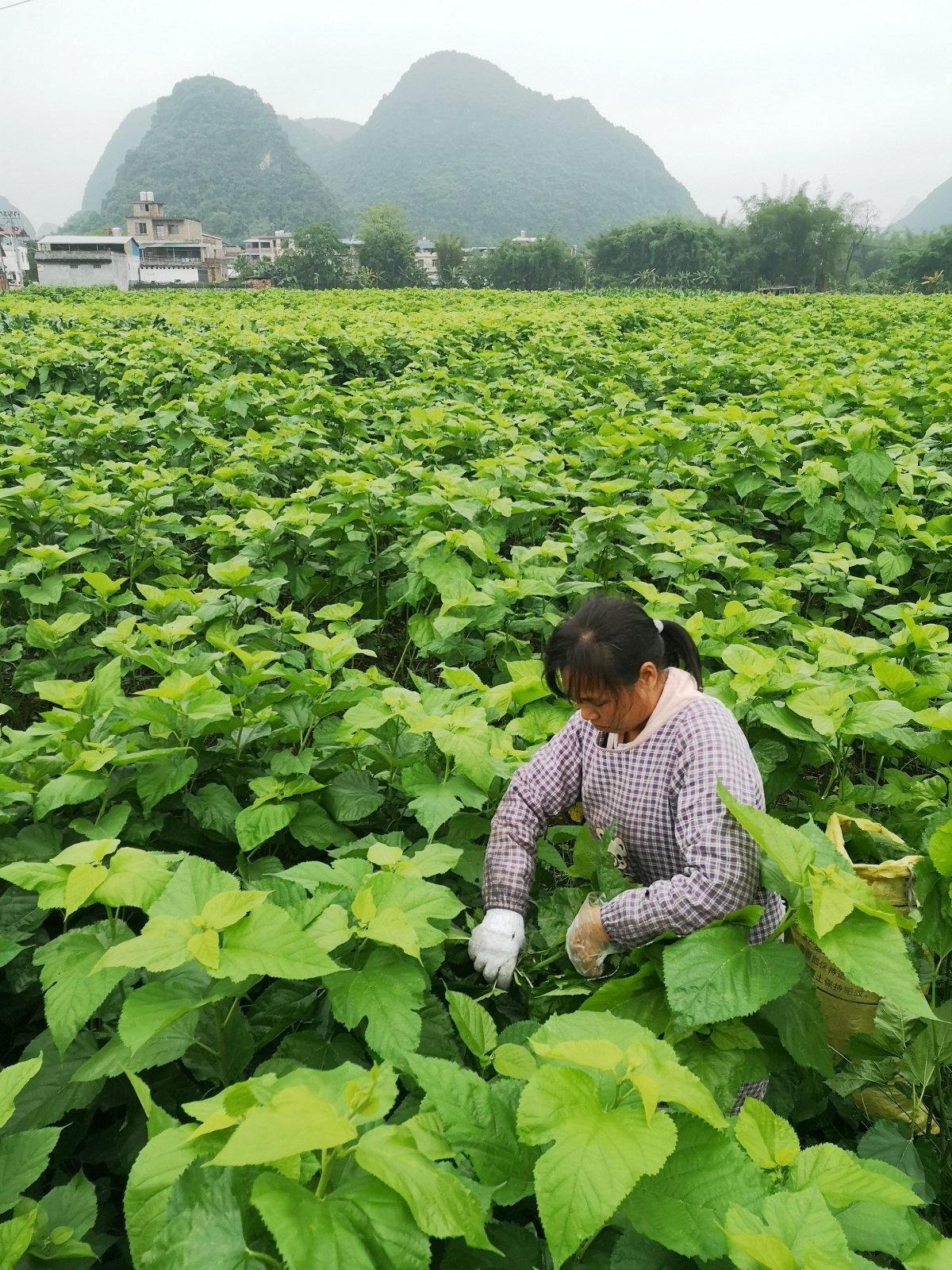 2022年4月30日,在罗城仫佬族自治县四把镇石门村冲迈屯,农民正在采摘桑叶。近年来,罗城仫佬族自治县采取“公司+村集体经济组织+专合社+能人大户+农户”的模式,大力发展蚕桑经济,助力乡村振兴。2021年,全县桑园种植总面积达到8.2978万亩,共发放蚕种35.04万张,完成蚕茧生产1.5527万吨,产值达到8.07亿元。通讯员 蒙增师 摄