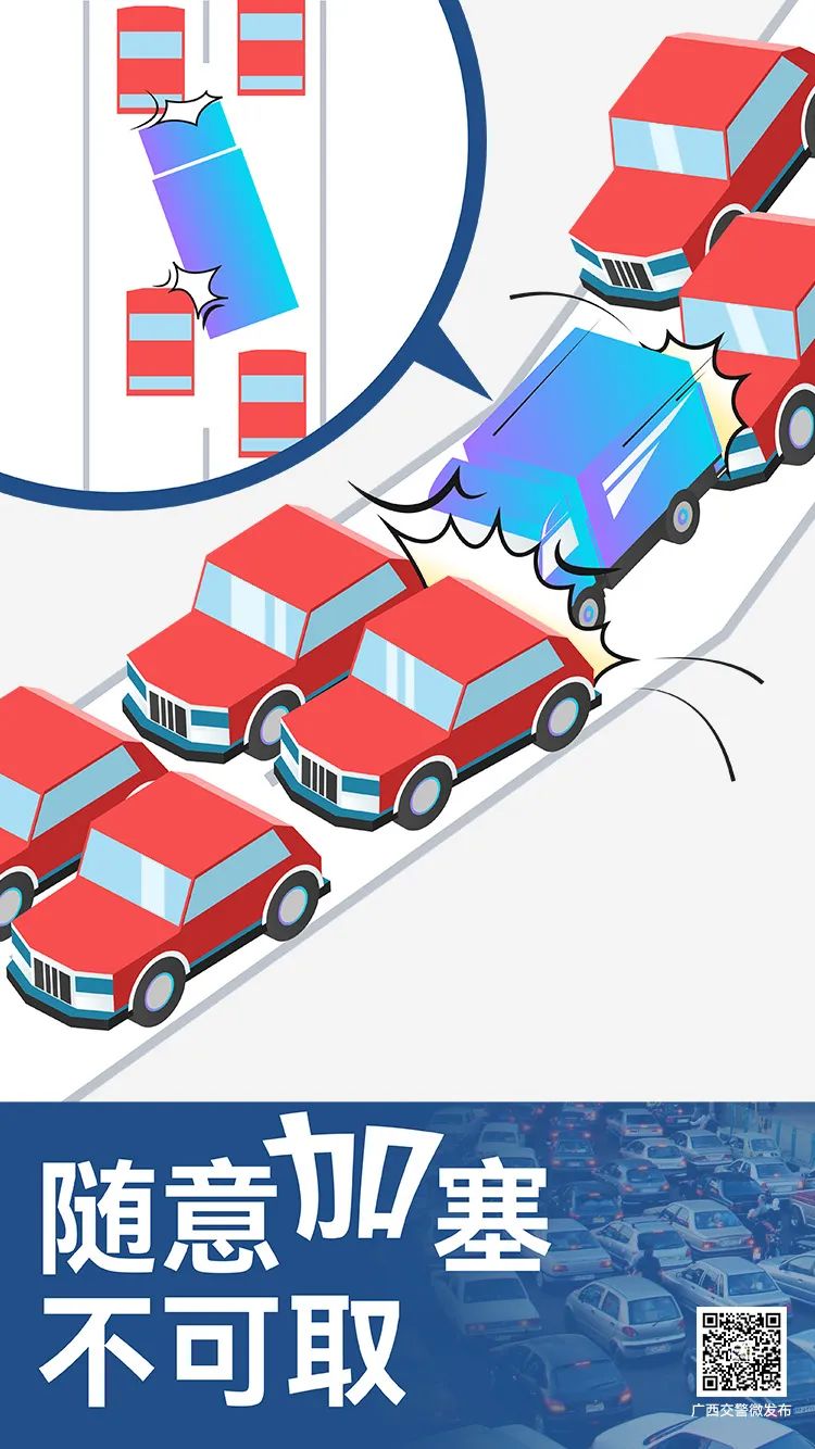 何为加塞?即车辆遇前方机动车停车排队或者缓慢行驶时,借道超车或者占用对面车道、穿插等候车辆的行为。当车辆随意变道,很容易发生一些摩擦、追尾事故,造成交通堵塞。