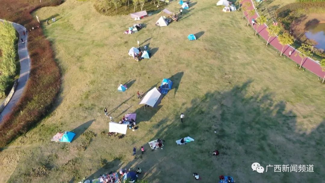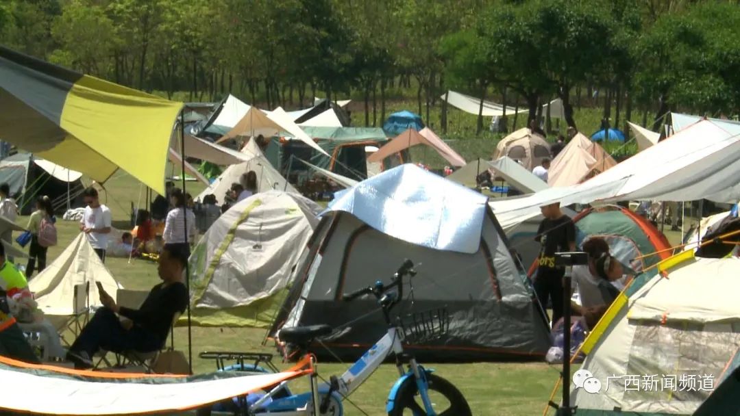 记者 任磊:我现在所在的这个地方,就是距南宁市区不远的网红帐篷营地,大家可以看到,这个营地的旁边就是罗村水库,这个营地就是挨着这个水库而建的,在这个营地上,我们看到大大小小这样的帐篷有几十个。