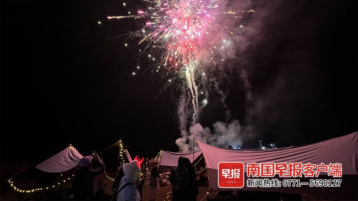 ▲游客在观看烟火。景区供图