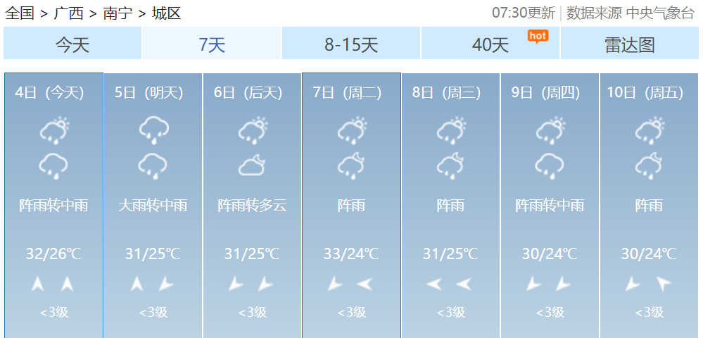 广西14个设区市天气预报