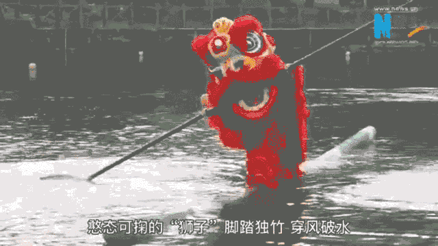 “独竹水上漂之舞狮版”中,