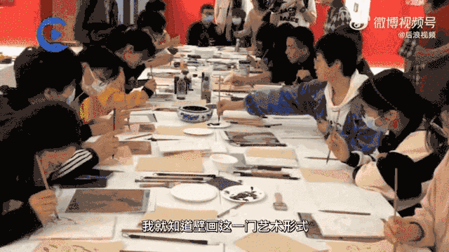 壁画体验课程中,