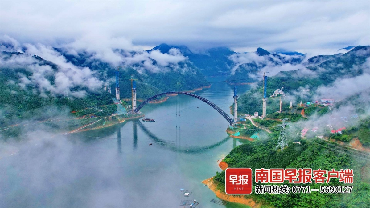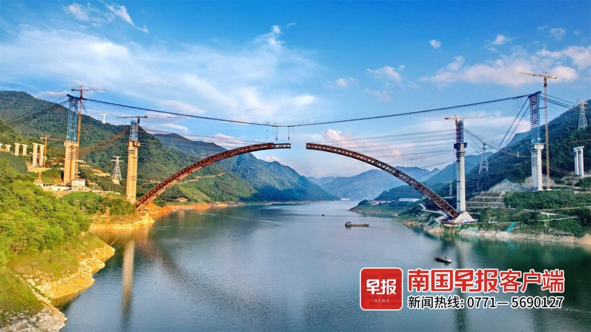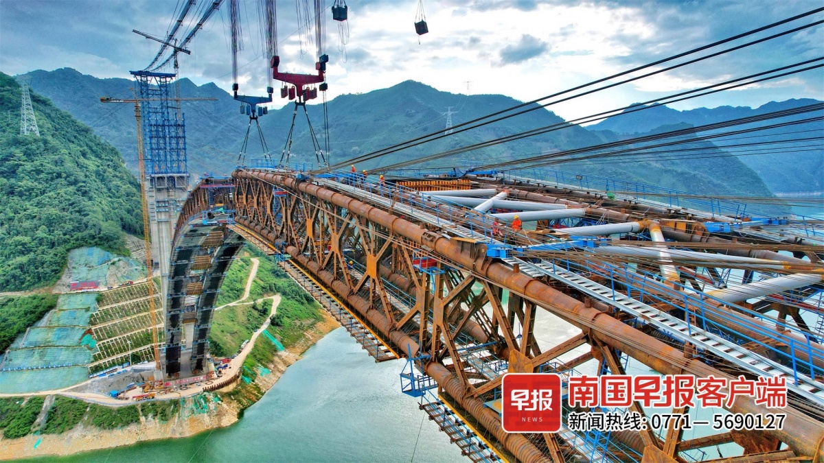 ▲天峨龙滩特大桥主桥拱桁实现高精度合龙。