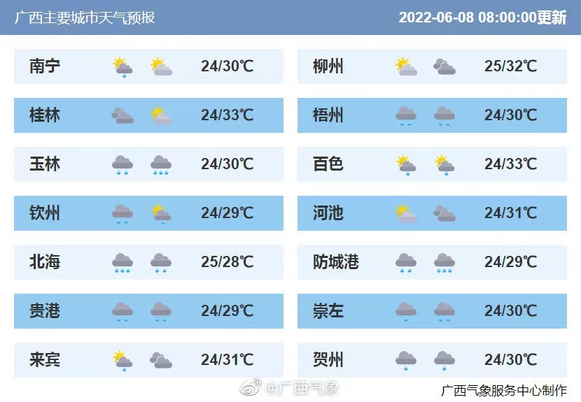 广西各地天气预报——