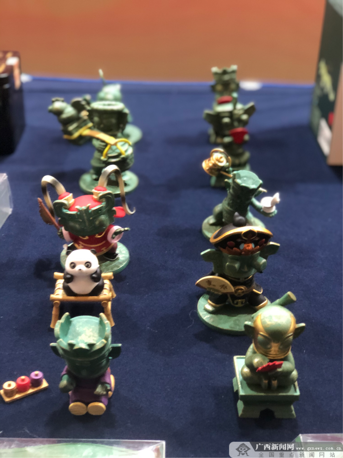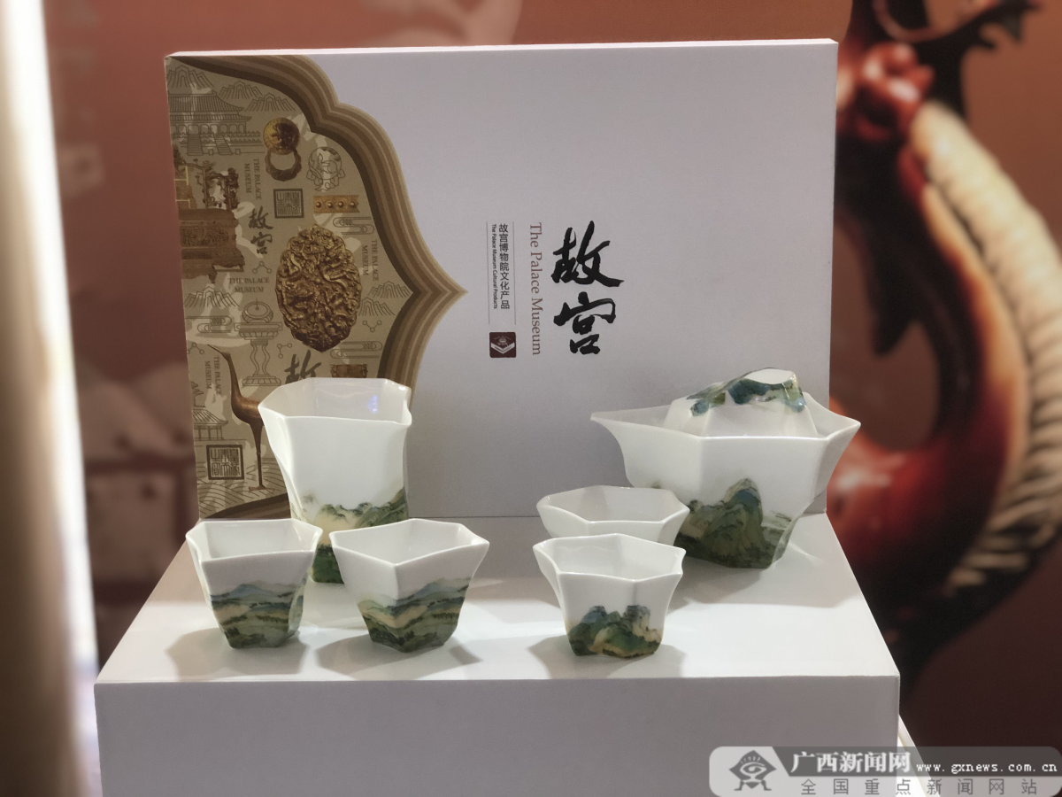在本次文化论坛现场,故宫博物院的千里江山异形茶具、壶、艺术折扇等明星系列产品,陕西工艺葡萄香囊、三星堆盲盒以及广西的壮锦、北海的南珠和贝雕等文创产品依次展出,成了大家关注的焦点。