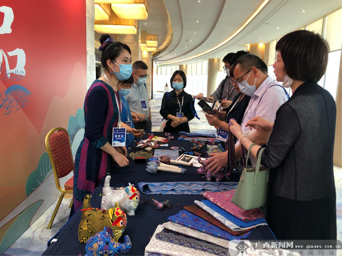 在论坛现场,大家选购壮锦等广西文创产品。记者 杨秋 摄