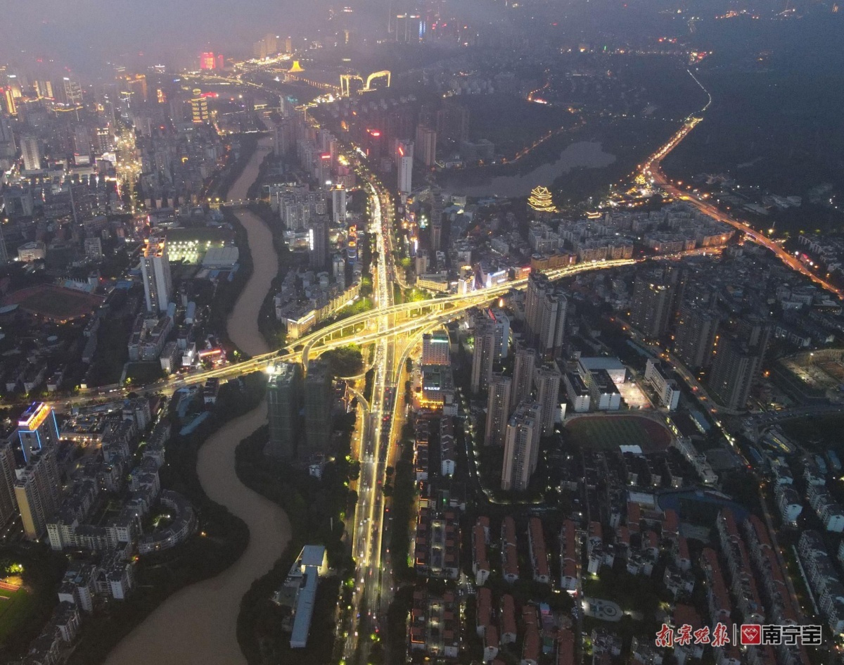 “白天看绿化,晚上看亮化。”华灯初上,邕城一条条街道变成了皓光闪耀的银河,五彩缤纷的灯光扮靓了城市夜景,漫步邕城街头,仿佛置身灯的海洋。那流光溢彩的灯火,让人流连忘返,不由得惊叹:“邕城的夜色真美。”