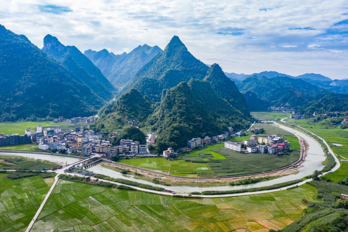 近年来,凤山县大力实施中小河流治理,通过修筑防洪堤、河道治理、打通排洪隧洞等措施,不断提高中小河流域抵御灾害能力,切实保障人民群众生命财产安全和基本农田建设。图为6月15日,正在建设中的河池市凤山县砦牙河小流域治理防洪堤项目。通讯员 周恩革 摄