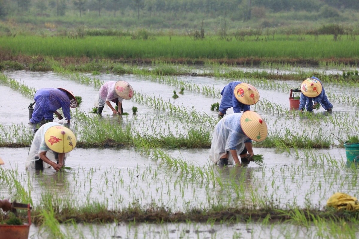 近年来恭城瑶族自治县多措并举,抓好“稳农业”工作,使农业综合生产能力进一步提升,建设高标准农田2万亩,新增水田面积436.28公顷。图为6月14日,在恭城瑶族自治县三江乡栗田村,当地村民正在种植水稻。通讯员 梁辉 摄