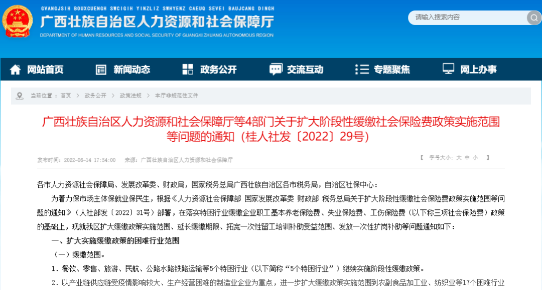广西阶段性缓缴社保费政策扩大到22个特困行业