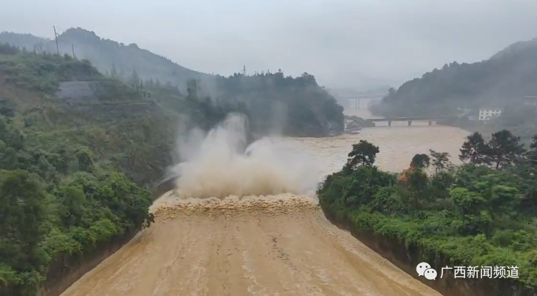 受低层偏南急流影响,广西柳州融安县出现大雨到暴雨,局部大暴雨到特大暴雨。根据融安县气象站消息,融安县长安镇泗维河水库最大雨量达275毫米。特大暴雨过后,柳州市境内最大中型水库泗维河水库开闸泄洪。上一次泄洪是2022年6月4日。