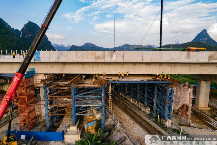 贵南高铁广西段跨既有铁路工程施工顺利结束 (1/5)