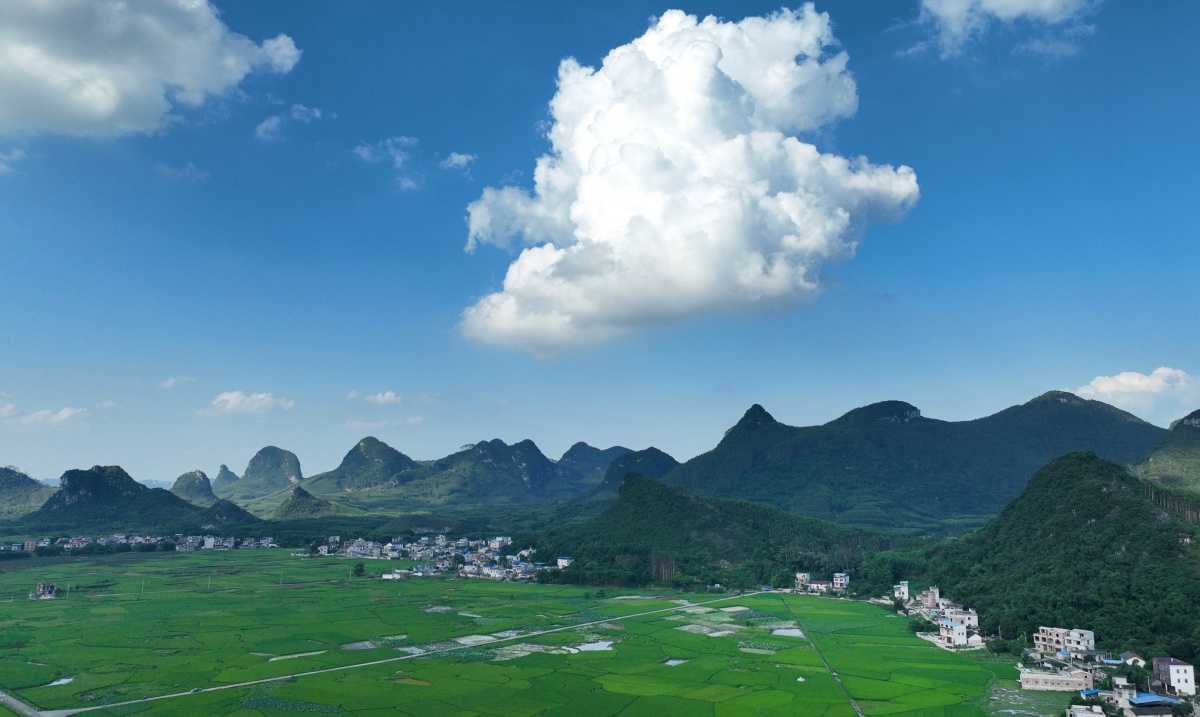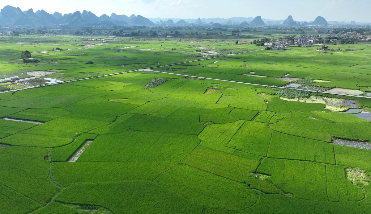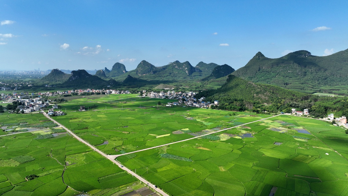 盛夏时节,柳州市柳江区进德镇泗浪村,郁郁葱葱的早稻、连绵山峦和山村民居交织在一起,宛如斑斓画卷。柳江区是广西商品粮食生产基地,今年早稻播栽面积12万多亩。眼下,早稻长势良好,开始抽穗扬花和灌浆,距离早稻大面积收获约有一个月时间,当前是产量形成的关键期,农民正加强田间管理。通讯员 黎寒池 摄