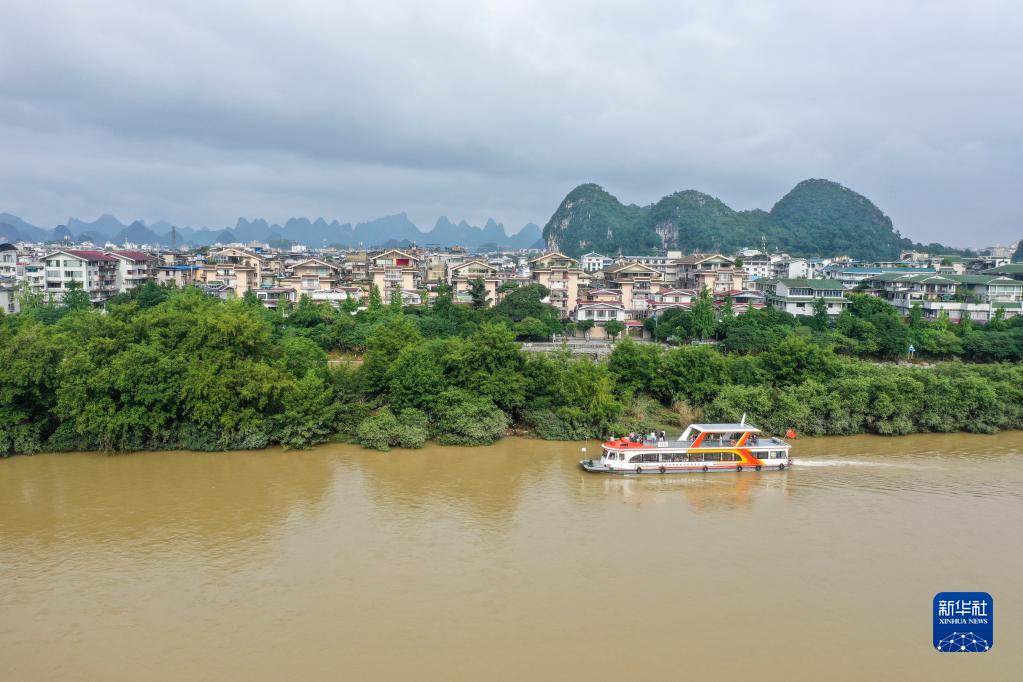 6月29日,在广西桂林,游客乘船游览漓江风光(无人机照片)。