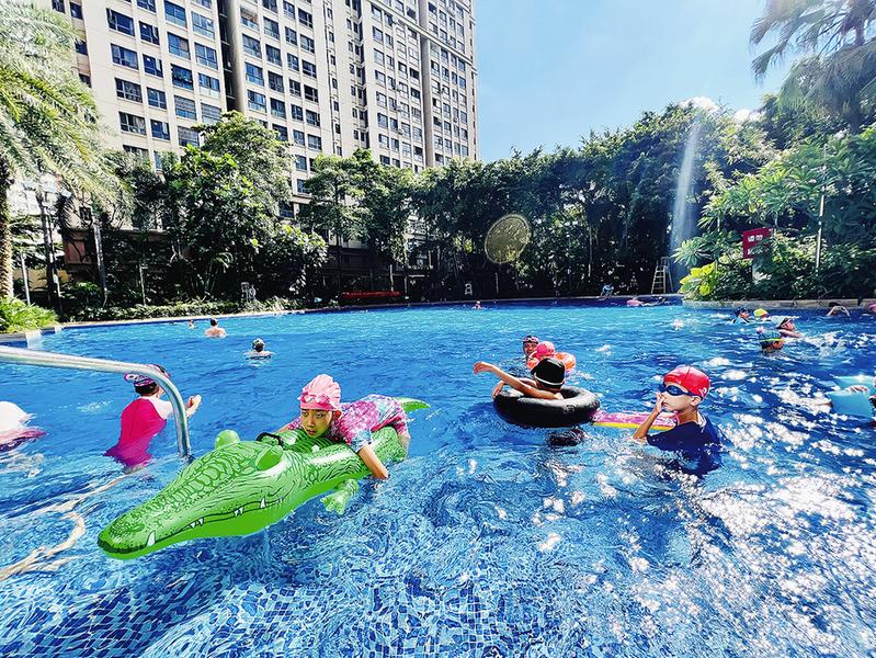 孩子们在小区游泳池消暑降温。南宁晚报记者宋延康 摄
