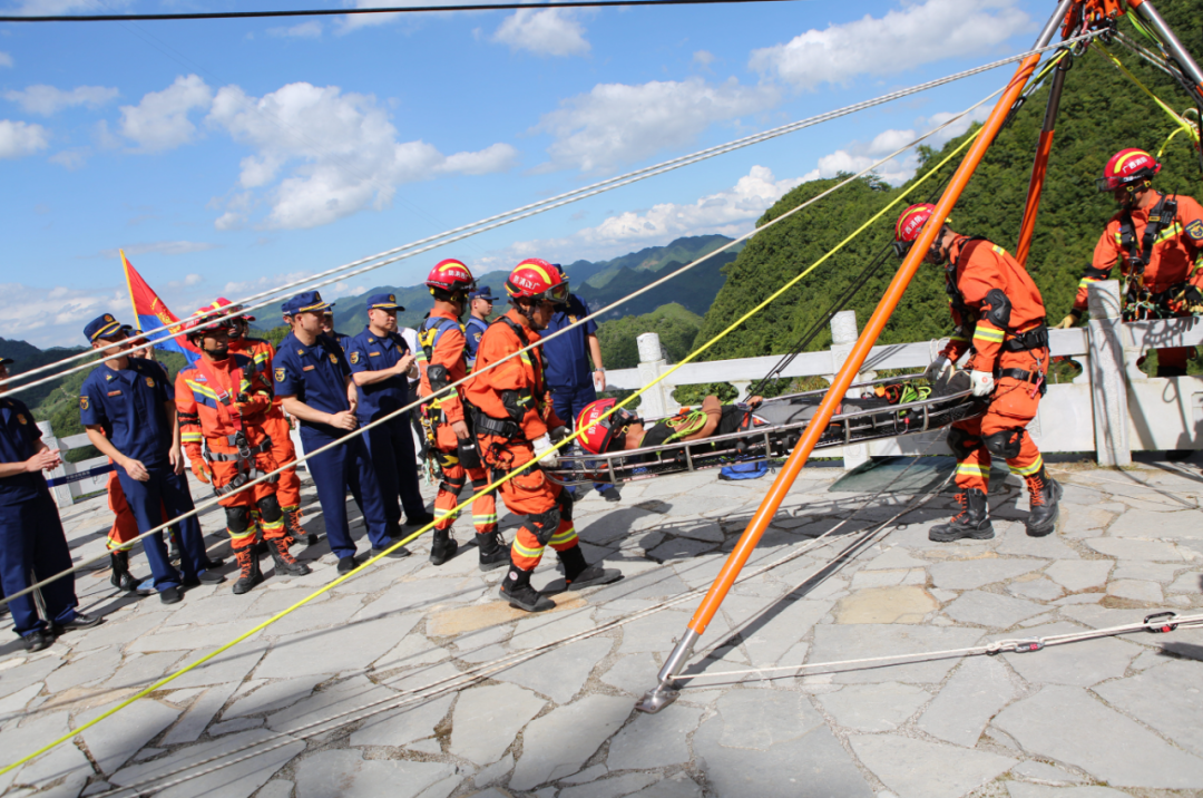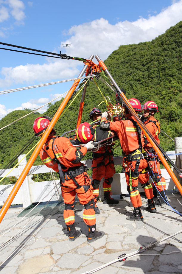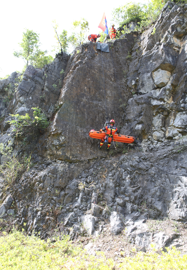 演练期间,各参战力量通力协作、密切配合,圆满完成了“大跨度斜向转运”“车辆坠崖事故救援”“高角度垂直提拉救援”“绳上1对1向下救援”“高角度斜向转运”“洞穴绳索救援”“山地搜索”共7个救援演练科目操作,达到了在实战环境下锤炼队伍、磨合机制、提升能力的既定目的。
