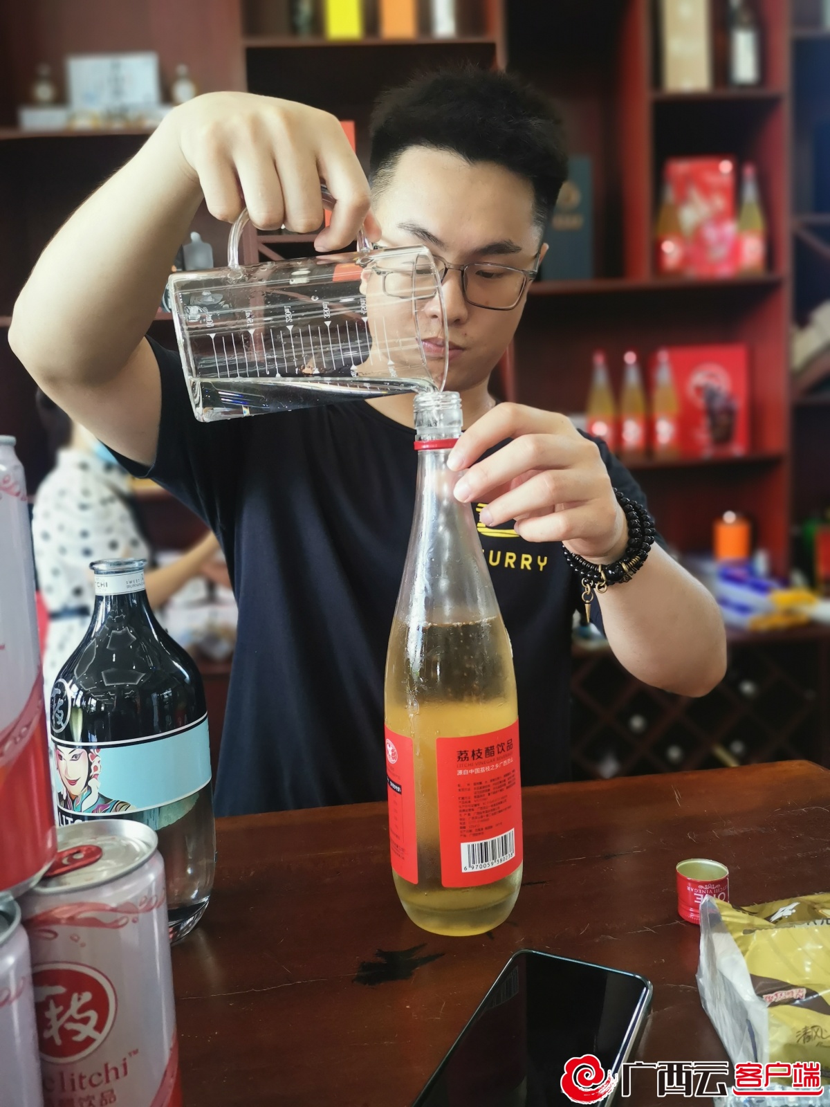 灵山一枝食品有限公司以生产销售荔枝醋、荔枝酒为主。网络名人们在这里品尝到了荔枝醋与荔枝酒调成的5度的荔枝鸡尾酒。炎热的夏日,喝上一口冰镇的荔枝鸡尾酒,太惬意了!