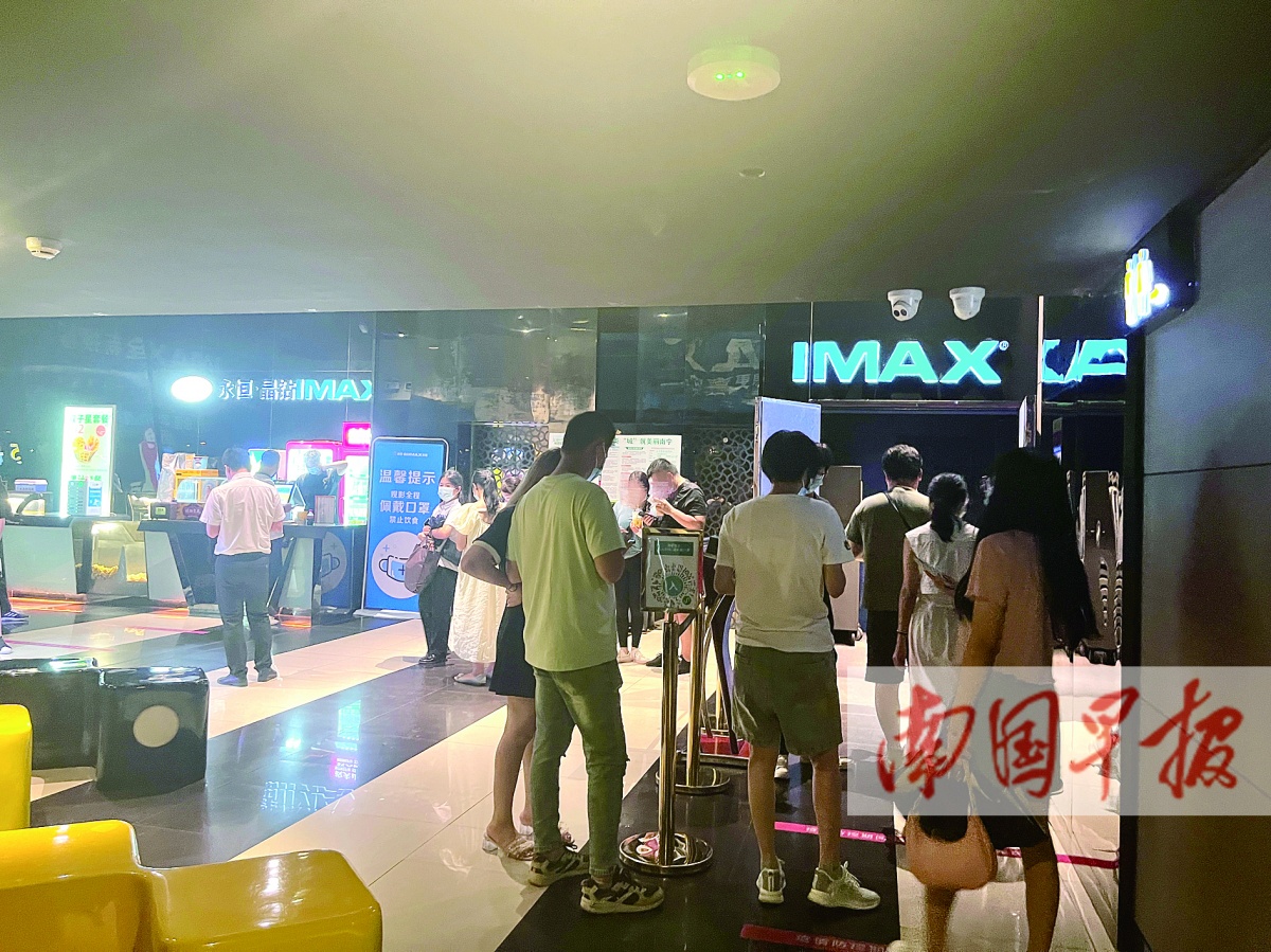 南宁市一家电影院门口,市民在排队检票。南国早报记者 刘豫 陆欣楠 摄