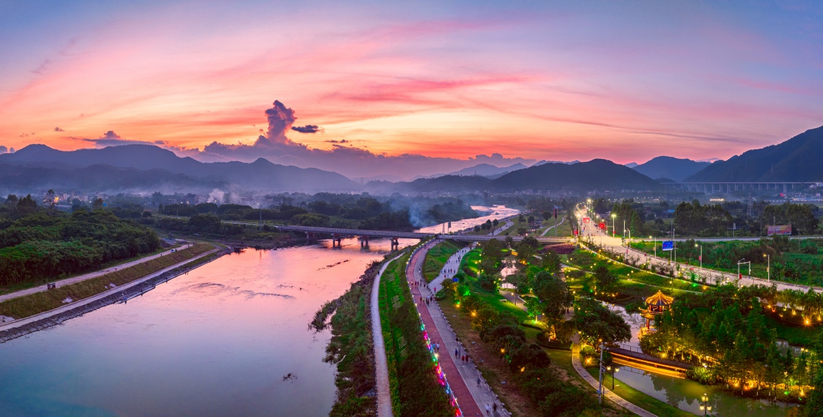 7月15日,蒙山县湄江边绚丽的彩霞美如画。通讯员 廖永超 摄