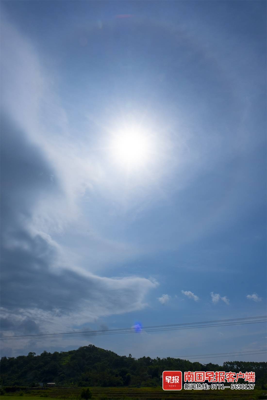 ▲7月19日上午9时30分许,南宁市长塘镇出现日晕,以往南宁的日晕一般出现在中午时分,此次这么早出现比较少见。南国早报客户端记者 尹世斌 摄