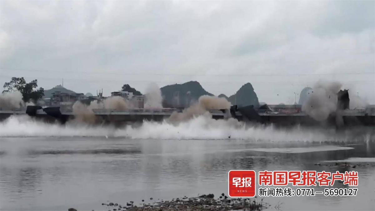横跨漓江近40年 桂林净瓶山桥成功爆破拆除
