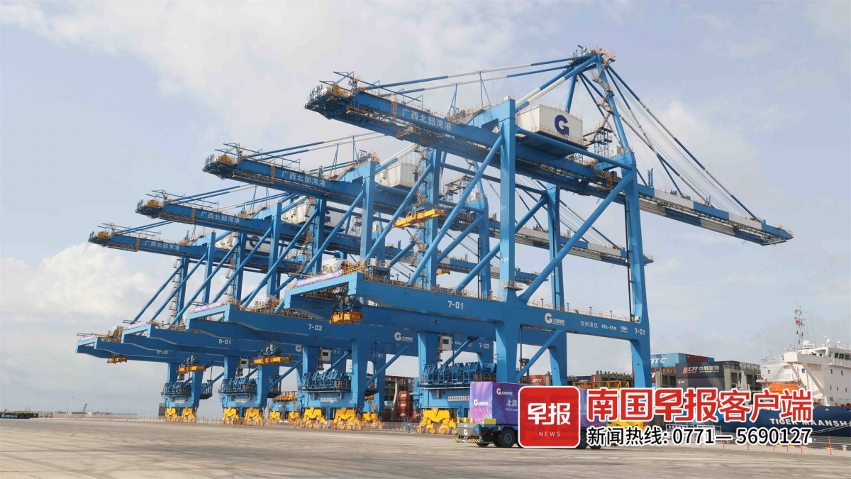 北部湾港钦州港大榄坪南作业区7号、8号自动化集装箱泊位。 自治区交通运输厅供图