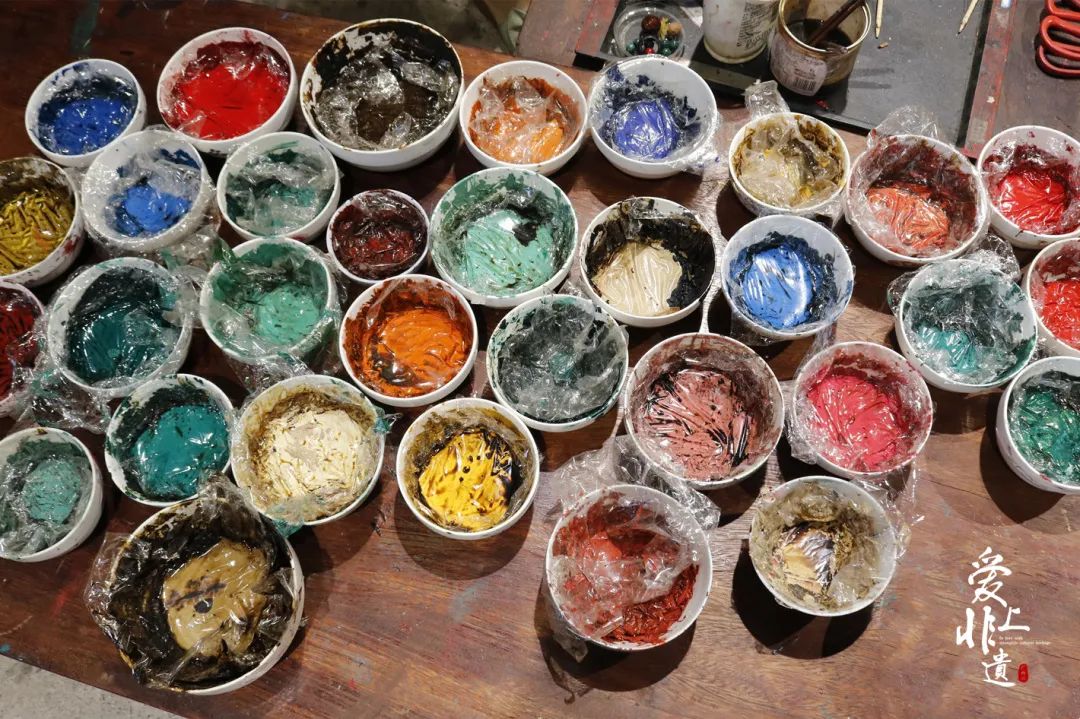色漆为人工漆,将生漆脱水,制成熟漆后与不同天然矿物粉均匀混合,可调制出不同颜色品类。杨思悦 摄