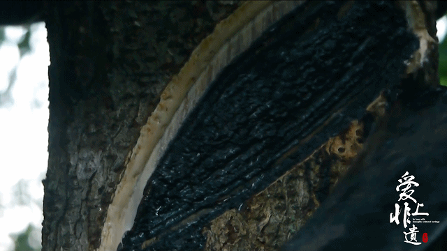 从漆树上割划,流出的乳白色汁液就是生漆。林宝利 制