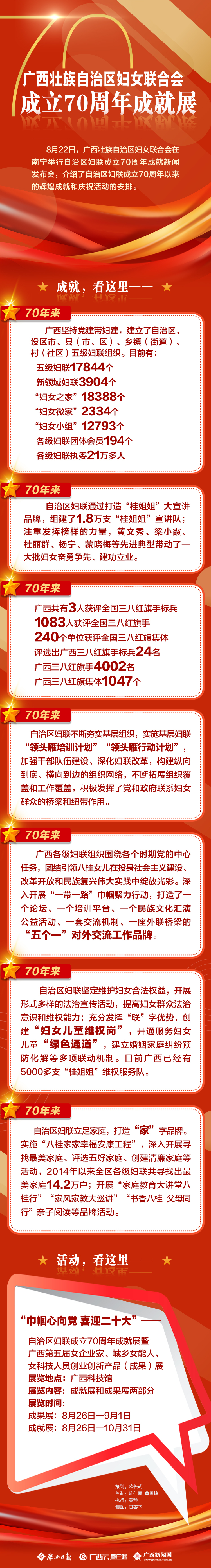 一图总览|广西壮族自治区妇女联合会成立70周年成就展 08-22 22:49 广西新闻网南宁8月22日讯(记者 黄静 实习生 李艳)8月22日,自治区妇联成立70周年成就新闻发布会在广西新闻发布厅举行,一图带你了解详情 ↓↓↓ 0人点赞