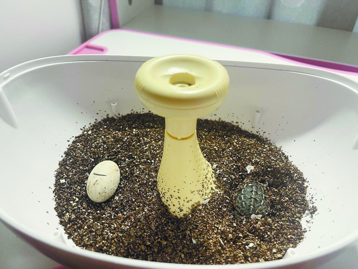 陈女士网购的乌龟孵化池,孵化出了一只小乌龟。南国早报记者 卢盈 摄