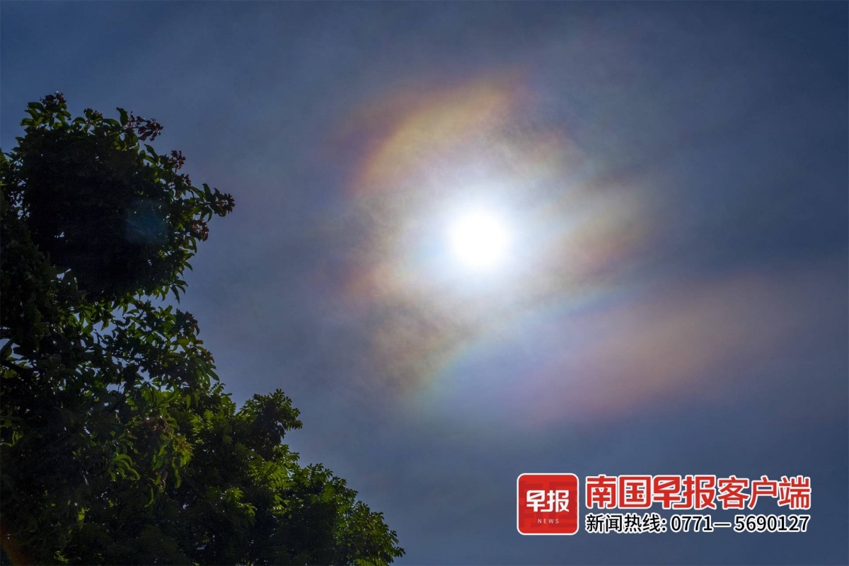 七彩祥云伴日!南宁上空出现日华奇景