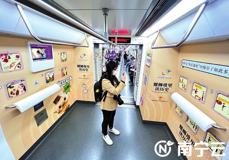 在地铁3号线,5月开行的顶蛳山遗址博物馆主题专列引人注目 记者 潘浩 摄