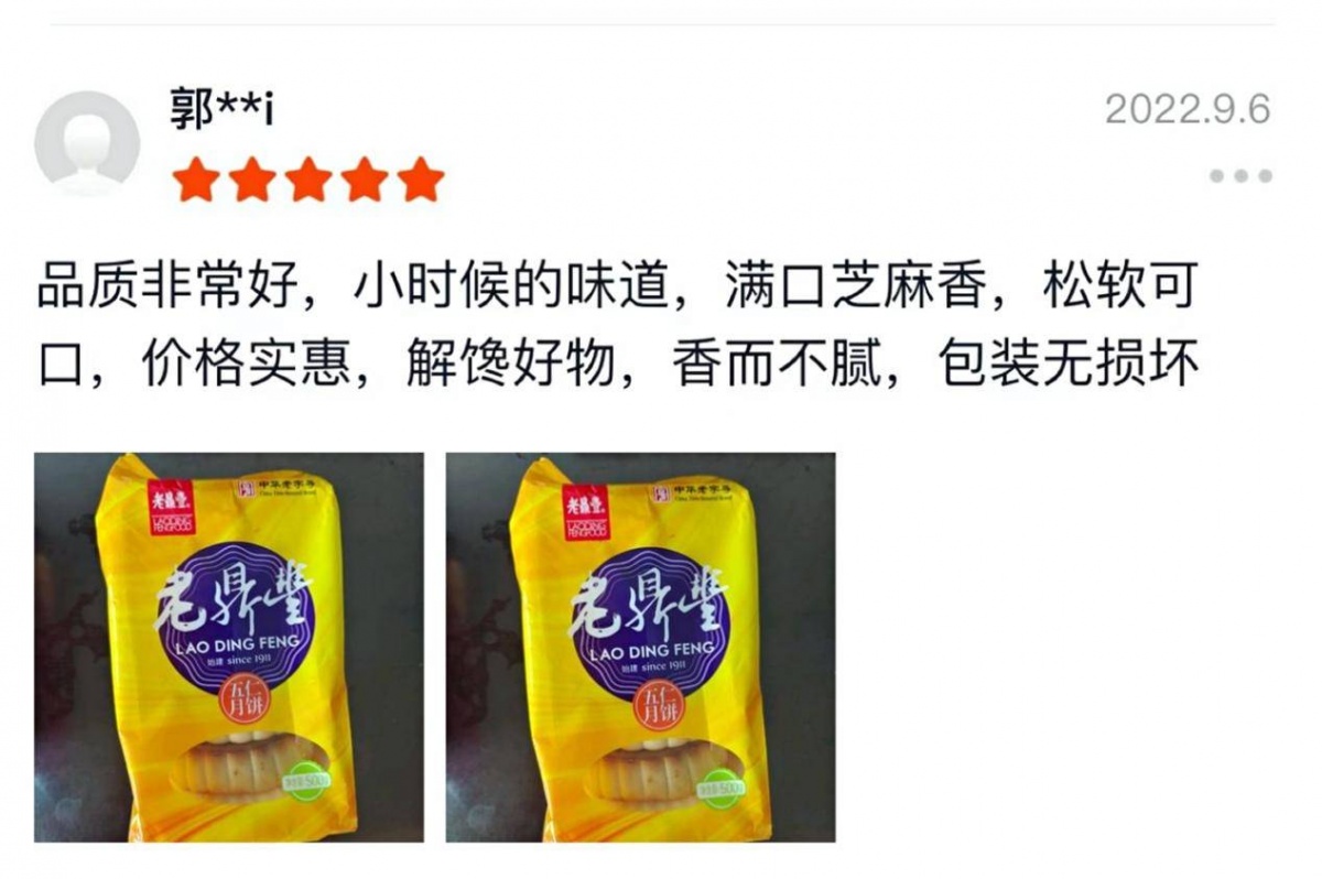 ▲哈尔滨消费者购买老鼎丰月饼后留言“小时候的味道”。(图源:美团优选页面截图)