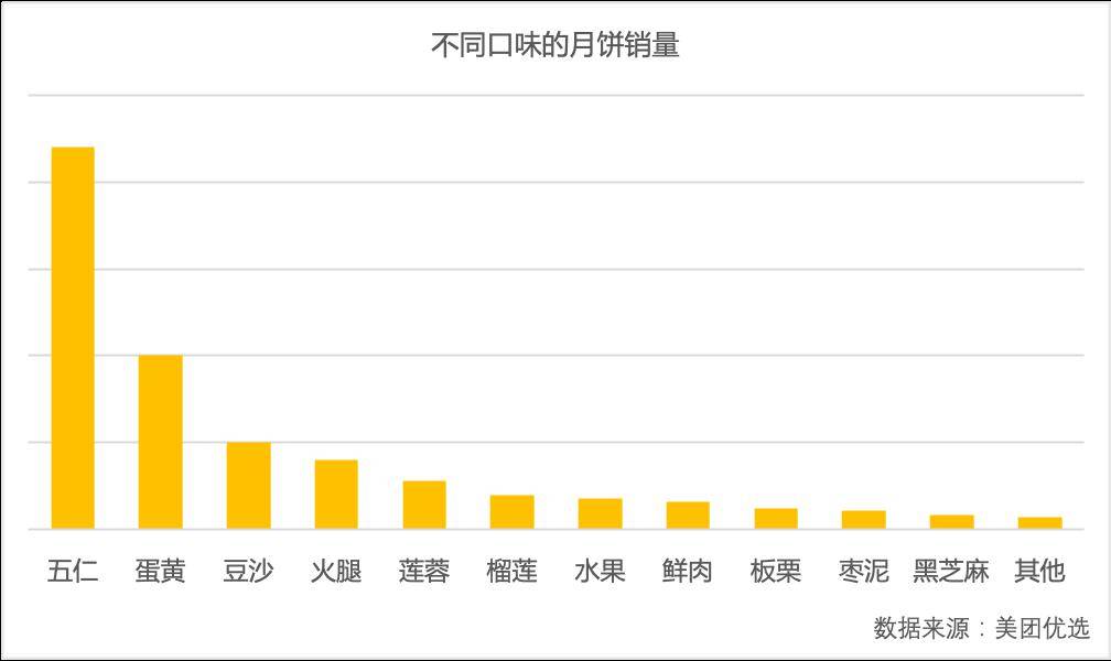 ▲零售平台数据显示,传统月饼口味依然占据主流,其中五仁月饼最受欢迎。