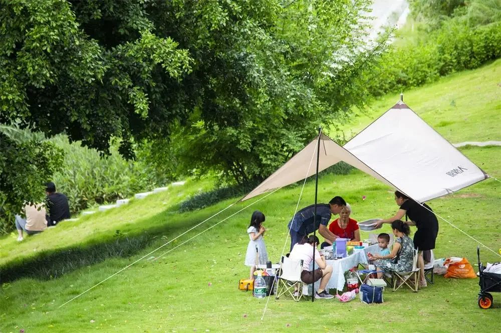 爱护草坪,不要搭建帐篷破坏草坪。