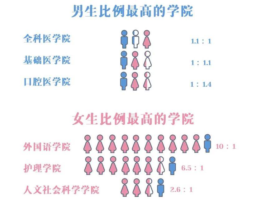 广西医科大学2022级新生男、女比例分别排名前三的学院。图片来源校方官微